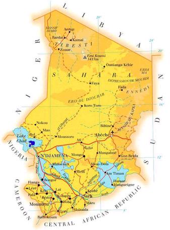 fronteiras: Camarões 1.094 km, República Centro-Africana 1.197 km, Líbia